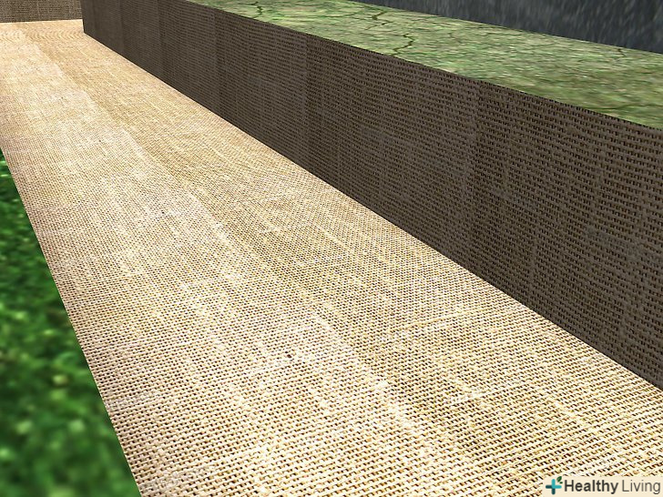 Покладіть фільтруючу тканину. Розстилайте її по дну траншеї внахлест до стін фундаменту. Частину, що залишилася тканину розправляйте і згладжуйте у напрямку від фундаменту.