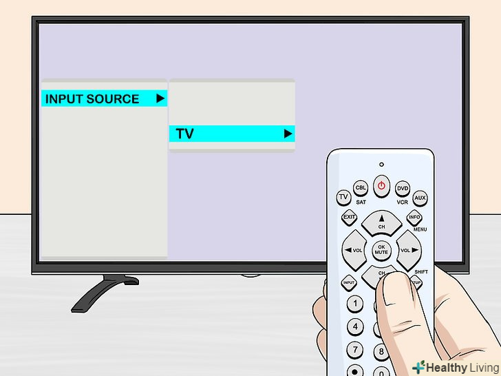 2. Змініть вхідний сигнал на телевізорі. на телевізорі або на пульті дистанційного керування натисніть кнопку Input (вхідний сигнал), щоб змінити вхідний сигнал на сигнал з HDMI-порту.