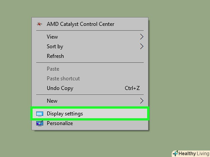 3. Клацніть правою кнопкою миші на робочому столі та виберіть< span class="nowrap" title="This is not a clickable button; it illustrates the button one should find." style="font-family:Lucida Sans Unicode,Lucida Grande,sans-serif;font-size:14px;padding:0em 1em; border:1px solid; border-color:#AAA #555 #555 #AAA; -moz-border-radius: 4px; -webkit-border-radius: 4px; border-radius: 4px; background-color: #F2F2F2; background-image: -moz-linear-gradient(top, #FCFCFC, #E0E0E0); background-image: -o-linear-gradient(top, #FCFCFC, #E0E0E0); background-image: - webkit-linear-gradient(top, # FCFCFC, #E0E0E0); background-image: linear-gradient(top, #FCFCFC, #E0E0E0);">Дозвіл екрану.відкриються Налаштування дисплея.