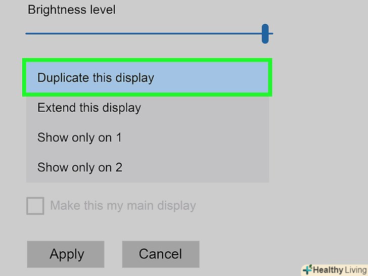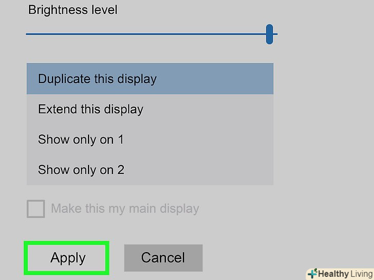 8. <б клас="whb по"> натисніть <проміжок стиль="білий-простору: без перенесення;"><проміжок клас="без перенесення" назва=" це не натискати кнопку; він показує кнопку треба знайти." стиль="шрифт-сім'я:дитинство без Юнікоду,Люцида Гранде,Санс-зарубок;шрифт-розмір:14px;оббивка:0em 1ем; кордону:1px твердих; кордону колір:#ААА #555 #555 #ААА; -МОЗ-кордону радіуса: в 4PX; -в WebKit-межі радіуса: в 4px; кордону-радіус: в 4px; фон-колір: #F2F2F2; фону-зображення: -МОЗ-лінійного градієнта(зверху, #fcfcfc, #E0e0e0); фон-зображення: -о-лінійного градієнта(зверху, #fcfcfc, #e0e0e0); фон-зображення:-у WebKit-лінійного градієнта(зверху, #FCFCFC, #E0E0E0); фонового зображення: лінійного градієнта (зверху, #FCFCFC, #E0E0E0); ">Застосувати. Налаштування дисплея будуть змінені і застосовані до монітора і телевізора. Тепер комп'ютер підключений до телевізора.