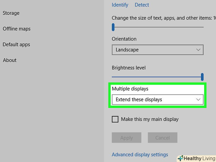 • Щоб додатково налаштувати монітор або телевізор окремо, клацніть по квадрату з відповідним номером, а потім виберіть "Додаткові параметри". Також можна перетягнути і переставити квадрати, щоб змінити орієнтацію двох дисплеїв.