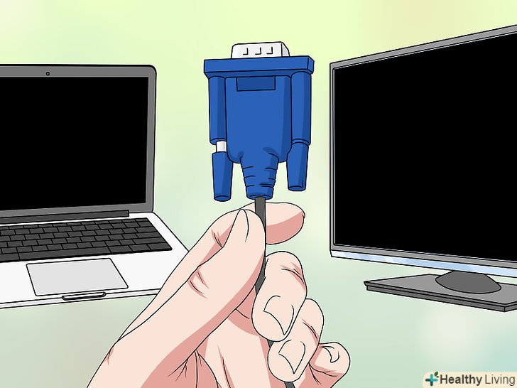 1. Підключіть комп'ютер до телевізора за допомогою DVI-кабелю або VGA-кабелю. DVI-порти і VGA-порти на комп'ютері і на телевізорі однакові, і на обох кінцях кожного кабелю повинні бути однакові штекери.
