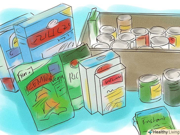 Запасіться їжею і водою. у разі сильного шторму ваша сім'я виявиться відрізаною від усього світу на кілька днів. При відсутності електроенергії будуть закриті всі магазини, тому вам слід запастися їжею і водою на 3-5 днів з розрахунку на кожного члена сім'ї. [2]- Вибирайте продукти, які не псуються (наприклад, консерви). У цьому випадку вони не пропадуть навіть при перебоях енергопостачання. До того ж, можна купити консерви перед початком сезону ураганів і не переживати про продукти до наступного року.