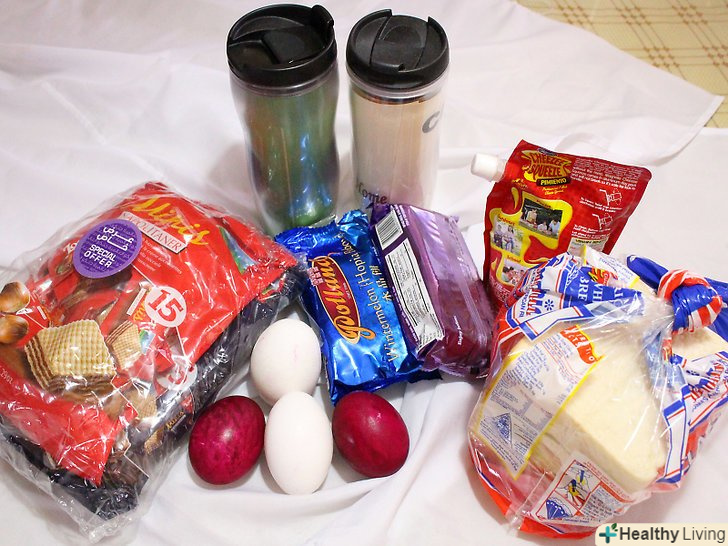 Упакуйте непортящіеся продукти, які легко споживати в їжу, наприклад, енергетичні батончики, сирокопчене м'ясо і консерви. переконайтеся, що поклали достатню кількість води.