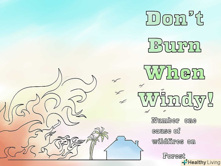 Не розводьте багать з трави і листя, не спалюйте сміття. Зв'яжіться з місцевим відділенням пожежної безпеки заздалегідь, щоб підтвердити, що багаття дозволені, і з'ясуйте, чи потрібен дозвіл для спалювання сміття. Якщо це дозволено, дотримуйтесь цього посібника.- Перевірте прогноз погоди. Якщо зокрема у вашому районі вітряно, не рекомендується розводити ніяких багать взагалі.