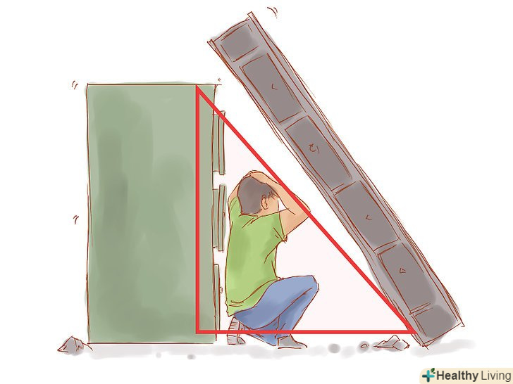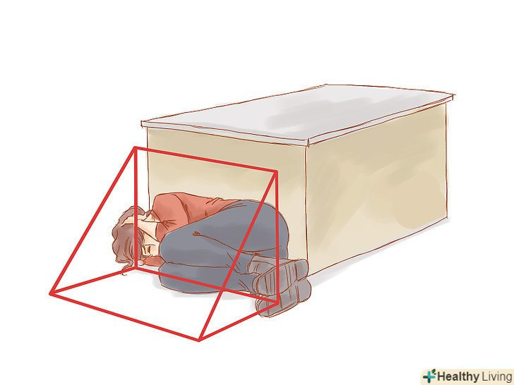 В якості альтернативи методу» на підлогу, захистіть голову і тримайтеся " ви можете використовувати трикутник життя. у ситуації, коли немає можливості знайти столу, під яким можна було б сховатися, використовуйте інші варіанти. Хоча багато провідних органів спецслужб зі світових катастроф оскаржують цей метод, [4] [5] він може врятувати ваше життя в тому випадку, якщо будівля, в якому ви знаходитесь, почне руйнуватися.