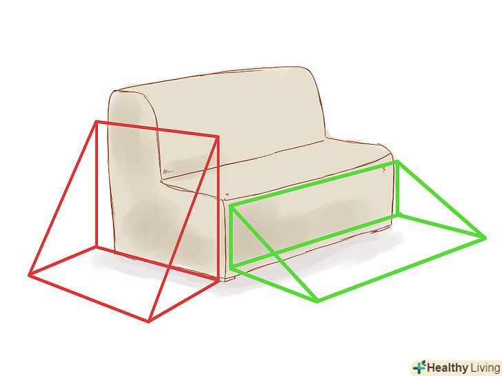 Знайдіть конструкцію або меблі неподалік. відповідно до теорії трикутника люди, які знаходять притулок поруч з предметами домашнього вжитку (не під ними ), такими як диван, часто виявляються захищеними в просторі, що утворився при плоскому обваленні. Теоретично під час руйнування важка стеля падає на об'єкт або меблі, руйнуючи цей предмет, поруч же утворюється порожнина або вільний простір. Прихильники цієї теорії вважають, що сховатися в цьому просторі — найбезпечніший варіант для виживання під час землетрусу.
