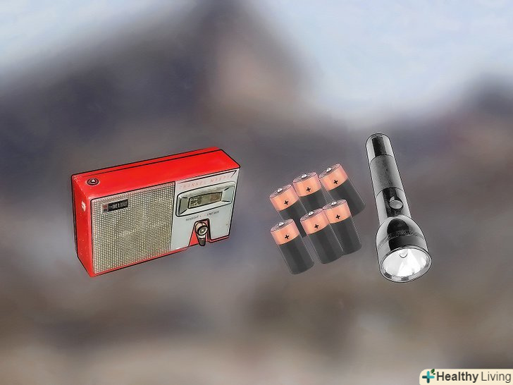 Купуйте заводний ліхтар або ліхтар на сонячних батареях, а також радіо. можна купити звичайний ліхтар і запасні батарейки. В ідеалі у кожного члена сім'ї повинен бути свій ліхтар. Також купіть переносне радіо на батарейках. Існують моделі на сонячних батареях і кінетичні радіо. З такими пристроями вам не доведеться переживати через батарейок.- Про всяк випадок купіть світяться палички, сірники і свічки.
