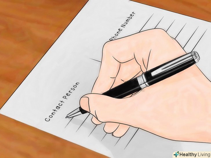 Складіть список контактів у разі надзвичайної ситуації. включіть в список всіх людей у вашому будинку або офісі. Ви повинні знати, хто за що відповідає, і як зв'язатися з людьми, якщо не зможете їх знайти. Крім основної контактної інформації буде також корисно включити додатковий номер до кожної людини. [7] запишіть:- Імена та номери телефону сусідів;