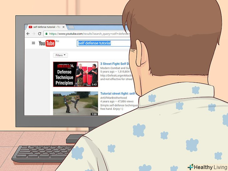 - Дивіться тематичні відео в Інтернеті. В Інтернеті ви знайдете безліч відеоуроків, які навчать вас базовим навичкам самозахисту і тренувань.