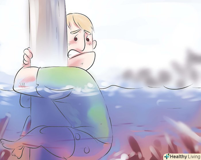 Запам'ятайте, якщо ви потрапили в потік води, не намагайтеся боротися з плином. ви можете потонути. Купи смертельних уламків, наприклад, машини, дерева, камені, будуть плавати всюди. Спробуйте зачепитися за великий плаваючий уламок або за міцно тримається в землі предмет, наприклад, стовп. Якщо ви не можете зачепитися за плаваючі уламки, намагайтеся уникати їх, відпливайте в сторону, піднирюють. Якщо ви зможете зачепитися або плавати на чому-небудь до сходу води або до тих пір, поки у вас не вийде вибратися, ви зможете вижити.- Коротко, якщо ви не можете з чимось впоратися, об'єднаєтеся з цим. А цунамі є тим самим явищем матері природи, яке ви точно не зможете здолати. Так що якщо ви вже потрапили в її владу, спробуйте пристосуватися. Вчепитеся за пропливає повз позашляховик і не відпускайте до останнього. Все найгірше відбувається в перші кілька секунд.