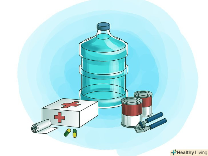 Зберіть запаси першої необхідності в легкодоступному місці. у разі наближення цунамі (або іншого природного катаклізму) вам, швидше за все, знадобляться кілька предметів для виживання, до того ж швидко. Вкрай корисно завчасно зібрати речі першої необхідності і набір для виживання:- Зберіть речі першої необхідності. Їжа, вода, A аптечка є необхідним мінімумом. Залиште набір на видному легкодоступному місці, відомому всім домочадцям. Крім того, біля комплекту речей першої необхідності не завадить залишити дощовик або інший плащ для кожної людини.