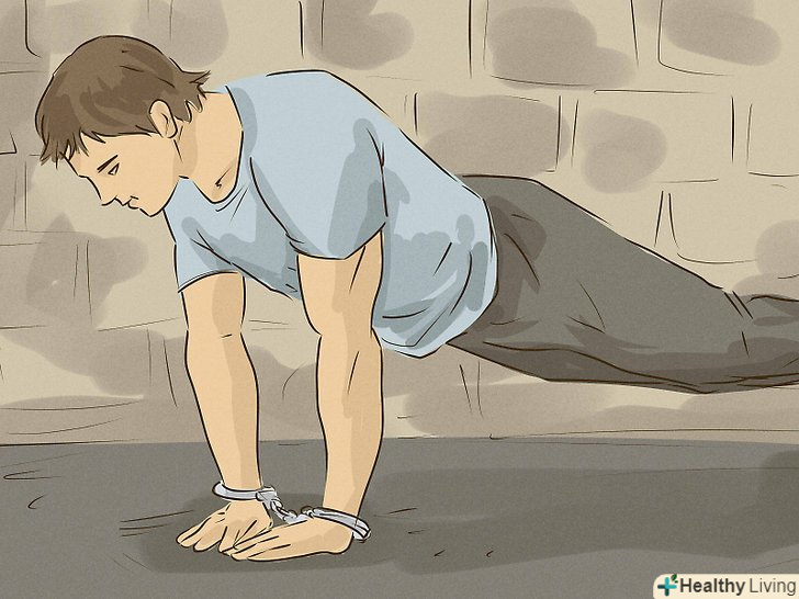 Підтримуйте фізичну активність. це буде непросто, особливо якщо вас тримають зв'язаним, але хороша фізична форма допоможе вам підтримувати ментальну рівновагу і здійснити втечу. Виконуйте будь-які фізичні вправи, які зможете: стрибайте, віджимайтеся, розтягуйтеся.