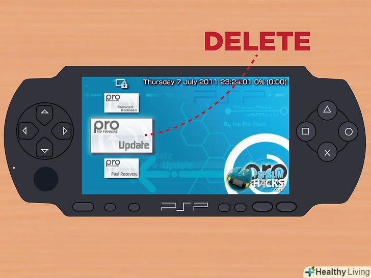 Завантажте сторонню прошивку. вам буде потрібно прошивка PRO-C, яку можна знайти... багато де. Скачайте файли і скопіюйте їх на PSP в папку PSP/GAME/. Так, в цьому випадку консоль теж повинна бути в USB-режимі.