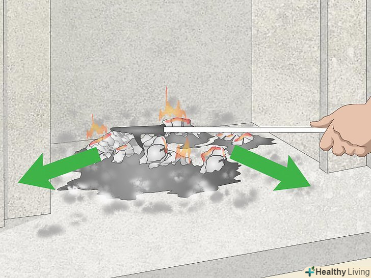 Зачерпніть трохи попелу металевою лопаткою і висипте її на дрова. Продовжуйте робити так, поки не загасіть все полум'я. [4]