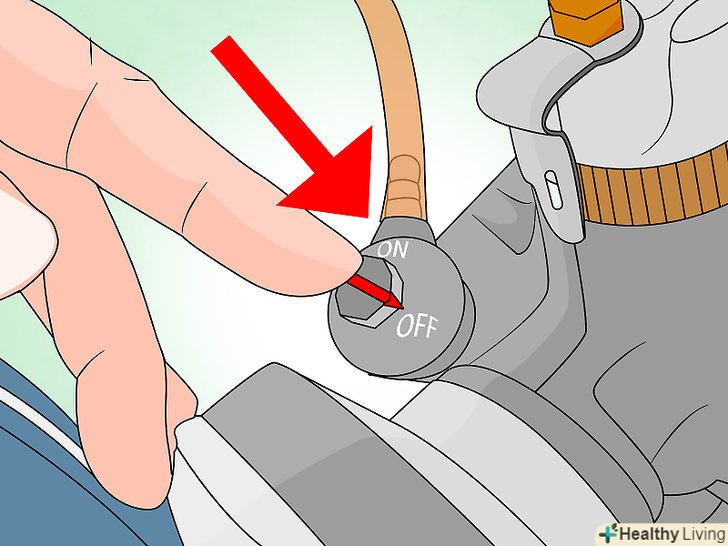 Перекрийте надходження горючої речовини. при займанні горючих рідин в першу чергу необхідно перекрити їх надходження (коли це можливо). Наприклад, якщо на колонці автозаправки від іскри статичної електрики запалиться бензин, спочатку слід задіяти аварійний вимикач колонки, який повинен розташовуватися поруч з кожною колонкою. Ця дія дозволить відсікти невелике загоряння від великих резервуарів з пальним.- У багатьох випадках, коли горюча рідина є єдиною речовиною, що підживлює вогонь, його можна загасити відразу після того, як надходження речовини було перекрито.