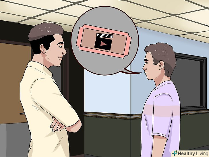 Зверніться до незнайомого дорослого.[5] знайдіть людину віком до двадцяти років, який може проявити більше співчуття, ніж інші дорослі, оскільки він сам недавно був на вашому місці. Попросіть його купити вам квиток. Якщо потрібно, але в якості подяки Запропонуйте купити йому поп-корн або що-небудь ще.- Якщо квиткова каса знаходиться поза приміщенням кінотеатру, то не попадайтеся на очі працівникам залу, але звертайтеся до незнайомців тільки в присутності інших людей.