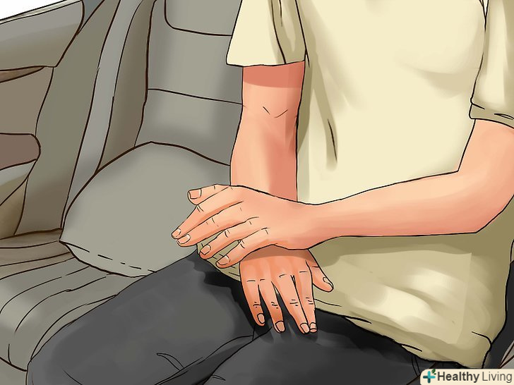 Покладіть руки на коліна. більшість автомобілів мають захист від ударів блискавки, проте не слід торкатися до зовнішнього металевого корпусу та інших предметів з металу. Якщо в автомобіль потрапить блискавка, електричний струм стече по зовнішньому корпусу в землю. Покладіть руки на коліна і не притуліться до дверцят і не торкайтеся до металевих деталей.- Гумові шини не захищають від удару блискавки. [19]