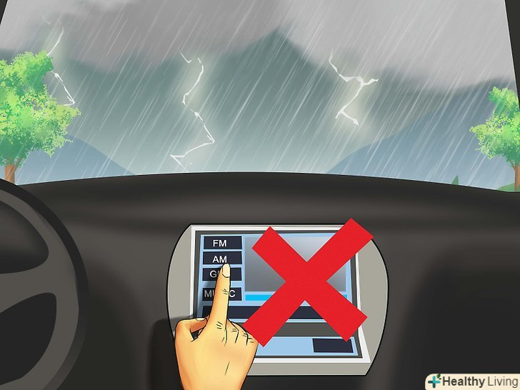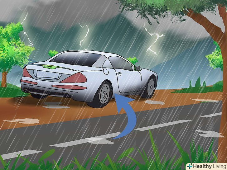 У разі сильної грози з'їжте на узбіччя. якщо гроза застала вас на дорозі, з'їжте в сторону і включіть аварійні вогні. По відкритому простору досить небезпечно їхати, особливо якщо світлофори виведені з ладу. Якщо зупинитися немає можливості, використовуйте візуальну і звукову сигналізацію і дотримуйтесь граничну обережність. [20]