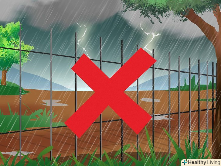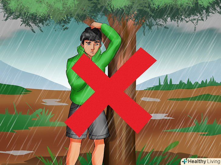 Не стійте біля дерев та інших високих ізольованих об'єктів. блискавка частіше б'є у високі предмети. Де б ви не знаходилися, тримайтеся подалі від високих об'єктів. Не стійте під час грози під деревами і тримайтеся осторонь від високих об'єктів, наприклад стовпів. [7]