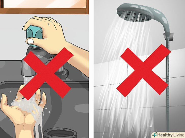 Під час грози не приймайте ванну або душ і намагайтеся не користуватися раковиною. якщо блискавка потрапить в будинок, вона може поширитися уздовж водопровідних труб. Не купайтеся у ванні або душі, поки не закінчиться гроза. Користуйтеся раковиною лише при крайній необхідності. [13]- Навіть якщо душова або ванна кімнати повністю закриті і не мають вікон, не ризикуйте, так як електричний струм може поширитися по водопровідних трубах.