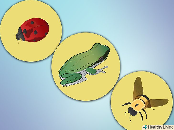 Визначте, які тварини будуть корисними для вашого саду, а які вважаються шкідниками. все залежить від того, в якому регіоні ви живете. Це також буде залежати від розміру вашого двору і саду, від того, чи є домашні або інші тварини на вашій ділянці.- Деякі тварини, такі як дощові черв'яки та бджоли, активно покращують сад. Деякі, як, наприклад, метелики, допомагають саду виглядати прекрасніше і при цьому не завдають ніякої шкоди навколишньому середовищу. Деякі, як, наприклад, сонечка, кажани, павуки і кішки їдять або відлякують інших шкідників. Але не все, що корисно для вашого саду, безпечно для людей, особливо для дітей. Ви, напевно, не захочете, щоб бджолина Колонія влаштувалася прямо у вашому домі (якщо ви не бджоляр, який може з цим добровільно змиритися). [1]