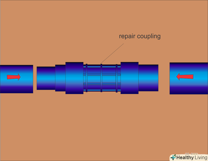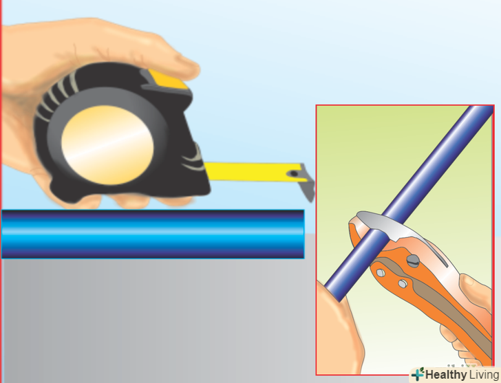 Відріжте трубу для ремонту замість зламаної, відміряйте її приблизно на 2,5 сантиметра коротше (кожна муфта подовжує трубу приблизно на 125 міліметрів). щоб точніше визначити, якої довжини знадобиться труба, заміряйте рулеткою відстань між трубами від середин муфт. При відсутності рулетки, покладіть трубу за місцем і відміряйте на око, зробивши позначки ручкою або олівцем.
