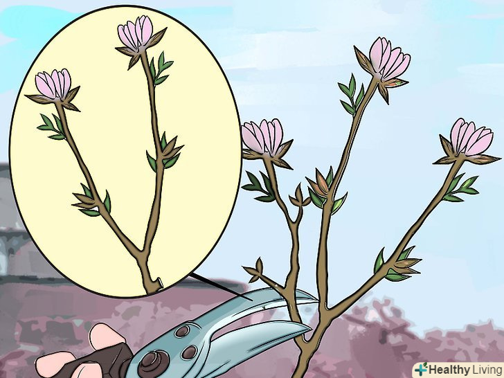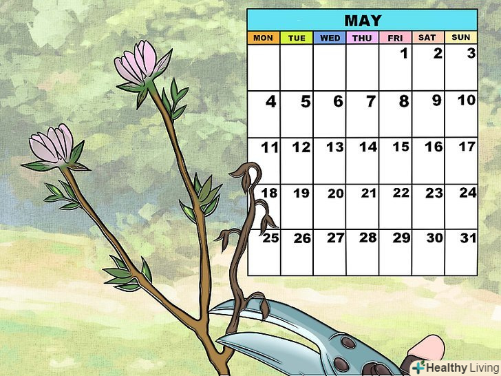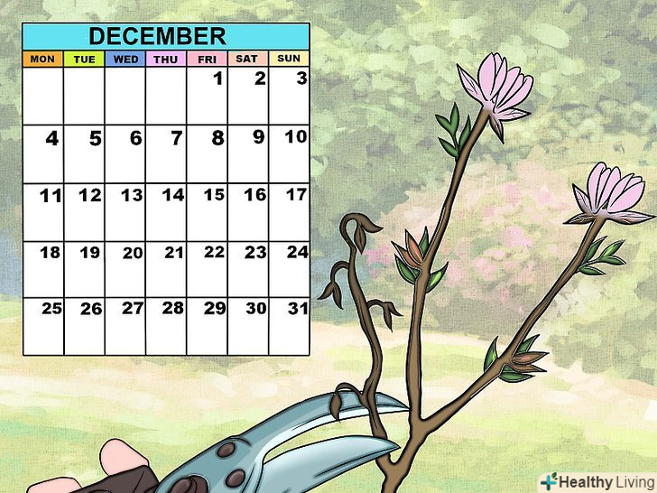 Робіть незаплановану обрізку, якщо є необхідність. ви можете зіткнутися з хворими або вмираючими гілками навесні або влітку - не найкращими сезонами для обрізки. Якщо подібне трапиться, зріжте гілку, навіть якщо дерево не знаходиться в стані спокою в той момент. Хвороба може поширитися на здорові гілки, якщо негайно не зрізати хвору гілку.- При роботі з хворим деревом, ви повинні чистити інструменти перед кожним зрізом. Занурюйте їх у розчин білильного вапна, промивайте їх гарячою водою і висушуйте перед тим, як продовжити.