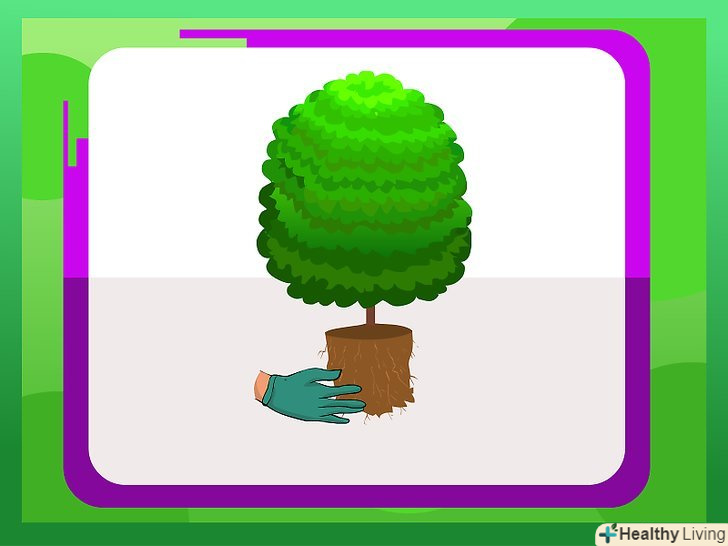 Викопайте яму в грунті, приблизно, таку ж глибоку, як висота рослини і таку ж широку, як поширені коріння.- Якщо ви садите самшит в горщик, покладіть кореневий кому в грунт на 5 см.в глибину.