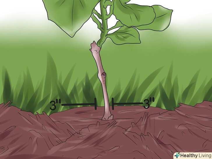 Покривайте грунт мульчею, відступивши від пагонів гортензії на 8-15 сантиметрів. коли мульча впритул прилягає до пагонів, це сприяє виникненню вогкості, що веде до кореневої гнилі.- Це також може залучити гризунів, які взимку пошкоджують стебла рослин.