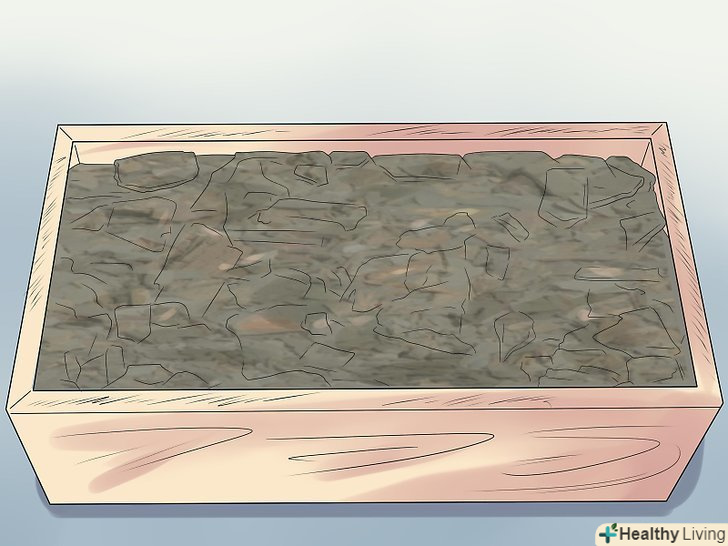 Професійний садівникПросійте мульчу, перш ніж вносити її в грунт, щоб видалити великі шматки. " для просіювання мульчі я використовую спеціальну раму з дротяною сіткою (Розмір осередку — 13 мм), прикріпленої до її нижньої частини. Заповніть сито компостом і потрясіть ним з боку в бік, щоб відсіяти більші частинки».