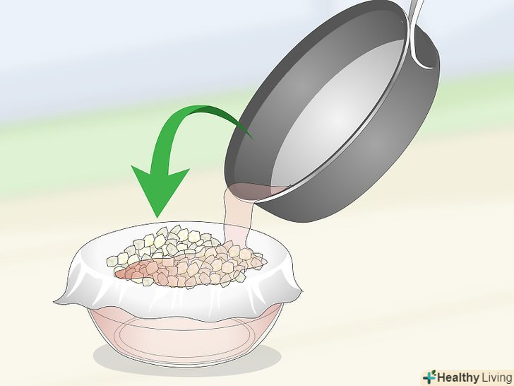 Процідіть суміш. застеліть сито з дрібною сіткою марлею і покладіть його на миску. Вилийте суміш у сито, щоб видалити шматочки часнику. Злегка стисніть марлю, щоб вичавити з неї якомога більше рідини.- Проціджування необхідно для того, щоб шматочки часнику не забили сопло розпилювача. [5]
