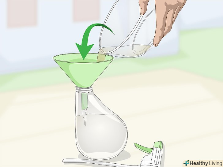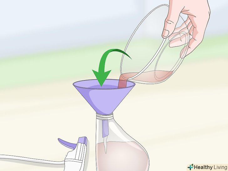 Перелийте суміш в пульверизатор. вставте воронку в шийку чистої пляшки з розпилювачем і перелийте в неї приготований розчин. [6] після цього дістаньте воронку і надіньте на пляшку кришку. Використовуйте розчин у міру необхідності, щоб контролювати шкідників і грибок у своєму саду.- Зберігайте розчин у холодильнику та використовуйте його протягом одного тижня.