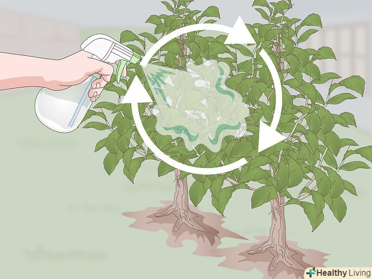 Розпилюйте спрей раз на кілька днів і після дощу. для кращого результату наносите спрей раз в 3-5 днів (а можна і кожен день), поки кількість комах не зменшиться. Після цього продовжуйте розпилювати спрей раз на тиждень. Крім того, наносите спрей після дощу, так як дощова вода буде змивати його з листя. [16]