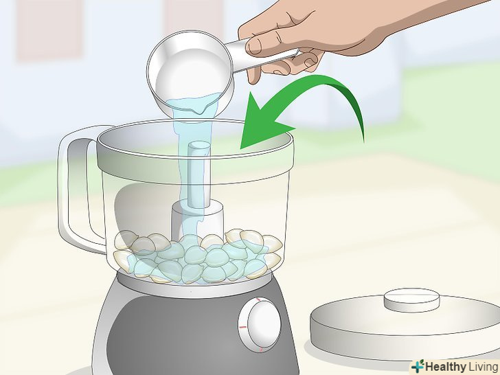 Перекладіть часник в блендер. покладіть зубчики часнику в блендер. Додайте 1 склянку (235 мілілітрів) води і щільно накрийте блендер кришкою. Перемішуйте вміст блендера до тих пір, поки не подрібніть часник (це займе близько 1 хвилини). [2]- Якщо у вас немає стаціонарного блендера, замість нього можна використовувати кухонний комбайн або ручний блендер. Можна також дрібно порізати часник ножем або придушити пресом для часнику і додати воду.