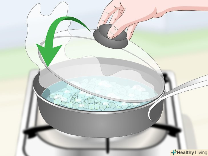 Закип'ятіть суміш. накрийте каструлю кришкою і доведіть воду до кипіння на досить сильному вогні. Коли вода закипить, зменшіть вогонь до середнього, так щоб вона продовжувала повільно кипіти протягом 15 хвилин. Після цього зніміть каструлю з вогню і відставте її в сторону. [9]