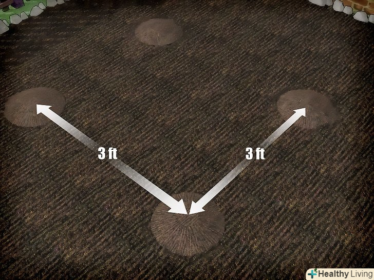 Посадіть насіння в невеликих горбках. Гарбуз Найкраще росте, коли її висаджують в підгорнутий грунт. Насипте пагорб приблизно в 3 см заввишки для кожної гарбуза, залишаючи між ними щонайменше 1 м.викопайте виїмку глибиною 1 см зверху кожного пагорба і киньте в неї 4-5 гарбузового насіння. Прикрийте насіння грунтом і злегка притисніть навколо.- Після того, як насіння проросте, прорідити їх, щоб залишити 2 - 3 паростка на пагорб.