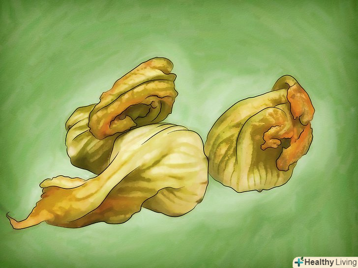 Їжте ранні суцвіття гарбуза. перші суцвіття розквітають на чоловічих рослинах і їх вживання не вплине на здоров'я рослин. Якщо хочете, відщипніть жовті суцвіття і додайте їх в салати або стир-фрай. В іншому випадку, вони природно відпадуть приблизно через тиждень після цвітіння.- Другий набір квітів виробляють жіночі рослини, і вони ростуть над крихітними гарбузами. Залиште жіночі квітки на пагонах. [1]