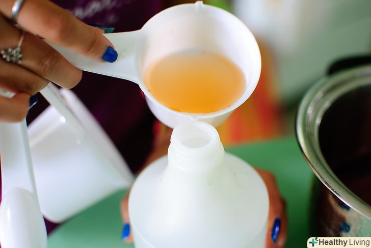 Налийте рідину в пульверизатор. позначте пляшку, щоб уникнути плутанини, і вкажіть дату зовні, так як через 2-3 місяці ефективність аерозолю знизиться. Коли будете готові використовувати пульверизатор, перевірте кріплення кришки і сопла і енергійно струсіть пляшку. [7]- Якщо рідина потрапить вам на руки при переливанні в пляшку, не торкайтеся обличчя і негайно вимийте руки, щоб уникнути роздратування.