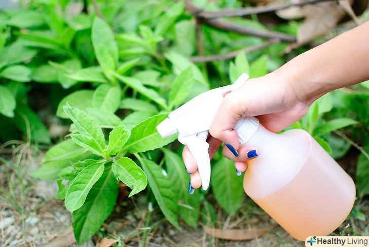 Розпилюйте рідину на рослини та навколо них, щоб відлякати оленів та кроликів. вранці або ввечері виходьте на вулицю і обприскуйте листя, стебла і грунт навколо рослин, які найбільше люблять їсти олені і кролики. Обов'язково обприскати кожну частину рослини, яку хочете захистити, оскільки тварини можуть вирішити з'їсти несприскані частини. [8]- Якщо ви не знаєте, як чутливі рослини відреагують на обприскування, спочатку протестуйте аерозоль на невеликій ділянці листа. Зачекайте чотири дні, і якщо рослина ніяк не відреагує, продовжите використовувати аерозоль. Не обприскуйте такі рослини, як плющ, папороті, Сукуленти, Пальми, деякі види томатів і азалії, оскільки вони відомі своєю чутливістю до інсектицидів і пестицидів.