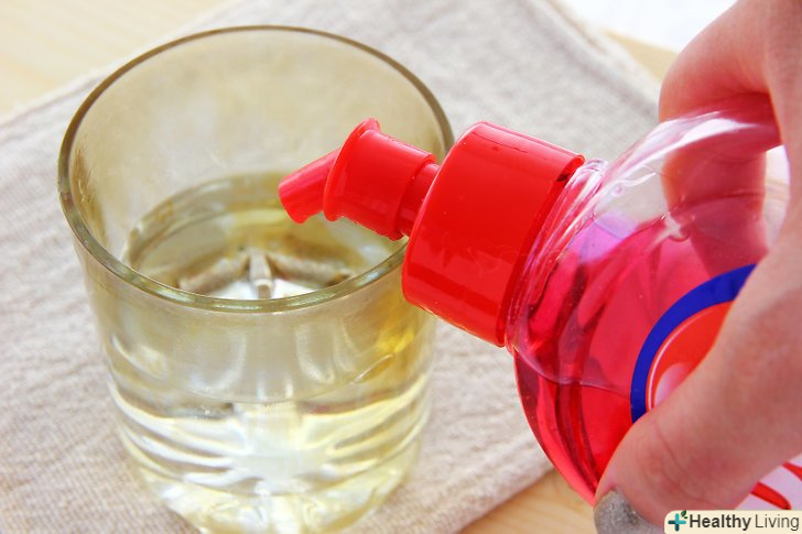 Додайте в рідину, що залишилася 2 чайні ложки (10 мл) біорозкладаного засобу для миття посуду. засіб для миття посуду необхідно, щоб аерозоль міг пристати до рослин та інших оброблюваних ділянок двору. Додайте засіб в рідину тільки після того, як вийдете мелений перець з води. Якщо він залишиться у воді, то засіб пристане до перцю і буде проціджено разом з ним. [6]- Спробуйте використовувати кастильське мило, яке є біорозкладаним і безпечним для зовнішнього застосування. Воно не заподіє шкоди рослинам або грунті, але зате зробить аерозоль досить липким.