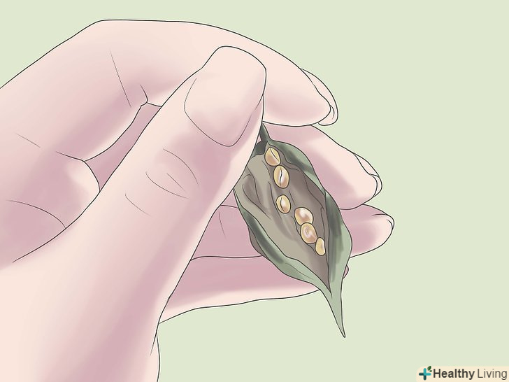 Висушіть стручки, якщо ви збираєтеся садити насіння. повісьте стручки в сухому місці і дайте їм висохнути, поки вони не стануть світло-коричневого кольору. [7]- Якщо ви дозволили стручкам висохнути прямо на рослині, то ви можете пропустити цей крок і перейти до наступного.