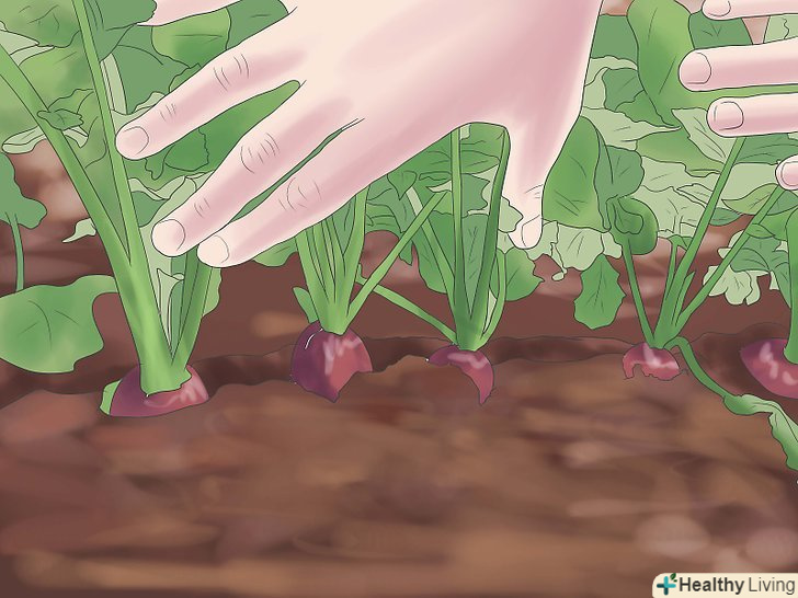 Дайте редису час, щоб він дозрів. багато сортів дозрівають швидко, буквально через три тижні коренеплоди можна збирати і вживати в їжу. Врахуйте, що редис потрібно збирати відразу ж, як тільки він дозріє.- Весняні сорти редису дозрівають досить-таки швидко, але так само швидко псуються, якщо їх залишити в землі на кілька днів довше, ніж необхідно. Зимові сорти редису вимагають більше часу для дозрівання, але краще зберігаються в землі.