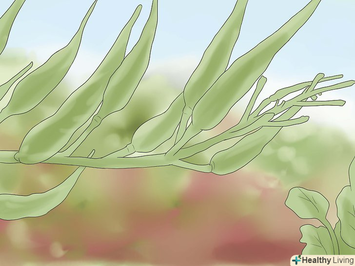 Ви можете вживати стручки в їжу, якщо хочете. вони, наприклад, чудово підійдуть для салату, або ви можете їсти їх в сирому вигляді.- Насіння редису можна також пророщувати. Для цього розкрийте стручки, поки вони не висохли. Зберіть насіння і проростіть їх так само, як якщо б ви пророщували боби.