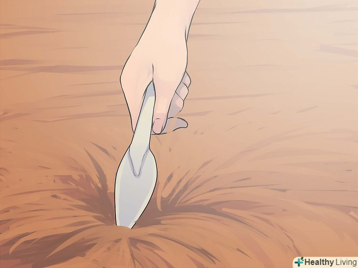 Викопайте яму. в середині вашого метрового кола викопайте яму глибиною 60-90 сантиметрів і шириною 30 сантиметрів. Точна глибина вашої ями залежить від довжини основного кореня вашого саджанця-вона повинна бути достатньою, щоб він помістився.