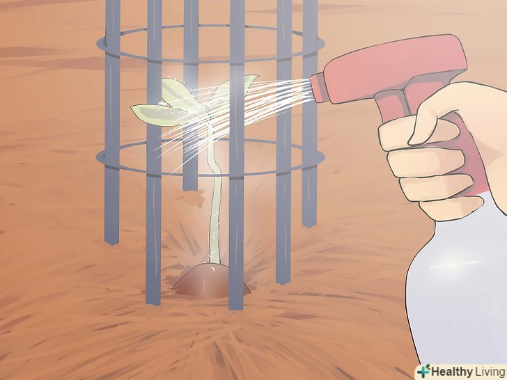 Захистіть ваші дуби. Дуби-особливо молоді і тендітні — це джерело їжі для багатьох травоїдних тварин. Жолудями люблять перекусити миші і білки, які легко можуть їх викопати. Дрібні саджанці беззахисні перед зайцями, козами та іншими тваринами які харчуються листям. Щоб переконатися, що ваші деревця не будуть знищені, прийміть заходи щодо їх захисту. Поставте навколо дерев решітки з сітки рабиці або міцну пластикову огорожу навколо стовбура, щоб до них не дісталися тварини.- Якщо ви живете в місцевості, де водяться олені, вам слід також захистити сіткою крону дерева.