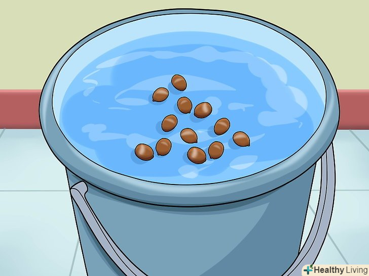 Проведіть «тест на плавучість». покладіть зібрані жолуді у відро з водою. Зачекайте пару хвилин. Викиньте всі жолуді, які залишилися плавати — вони зіпсовані. [5]- Жолудь може плавати тому, що черв'як або личинка проїли в ньому порожнину. Точно також може плавати Жолудь, зруйнований зсередини цвіллю.