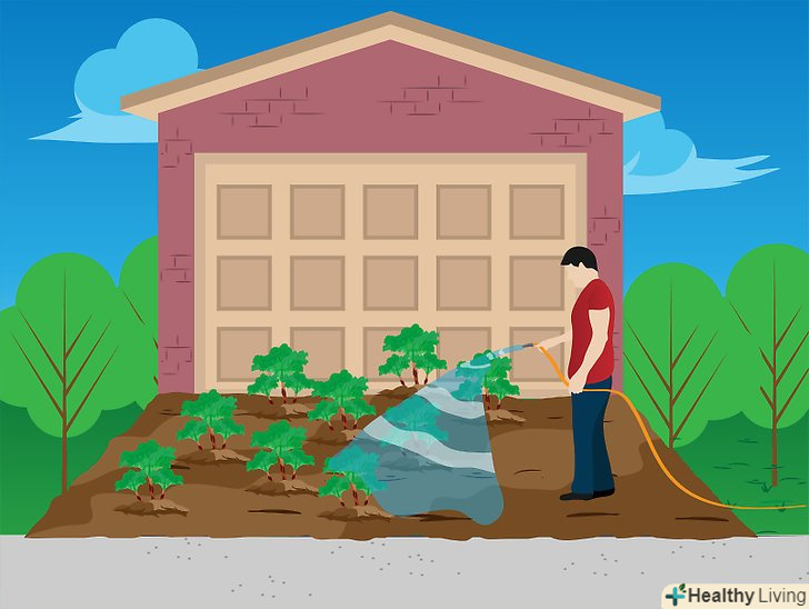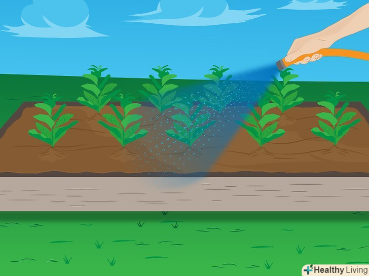 Посипте грядку мульчею. накрийте грунт в місці посадки шпинату сіном, соломою, листям або трав'яний мульчею, щоб не дати пустити паростки бур'янам. Висмикування небажаних рослин може пошкодити тендітні коріння шпинату,тому мульча-прекрасний засіб для запобігання проростання бур'янів.- Ретельно полийте зону посадки шпинату. Обов'язково використовуйте лійку або дощувальну насадку на шланг. Сильний струмінь може порушити орієнтацію щойно висаджених насіння або навіть змити їх.