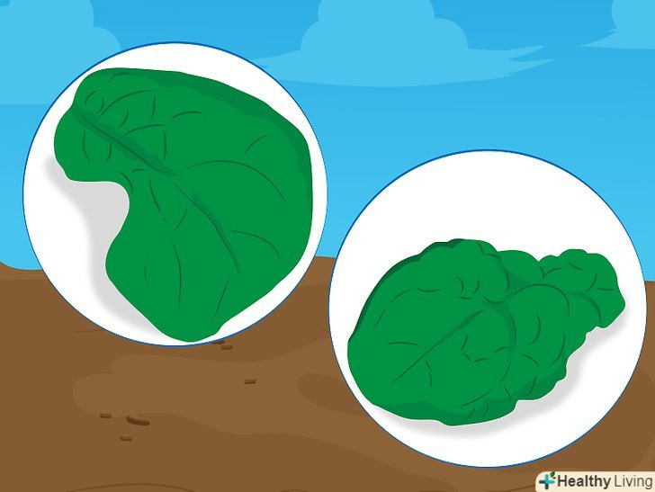 Удобрюйте рослини тільки при необхідності. якщо шпинат росте повільно, вам доведеться додати трохи азотного добрива. Як було сказано вище, шпинат любить грунт, багату органічним матеріалом, таким як гній, люцернове Борошно, соєве борошно, борошно з сухоцвіту, кров'яна кормова борошно. Додайте добриво на глибину декількох сантиметрів, після чого ретельно полийте.- Зберіть шпинат. як тільки листя виростуть досить великими, щоб їх їсти (як правило 8-10 см в довжину і 5-8 см в ширину), ви можете зібрати їх.
