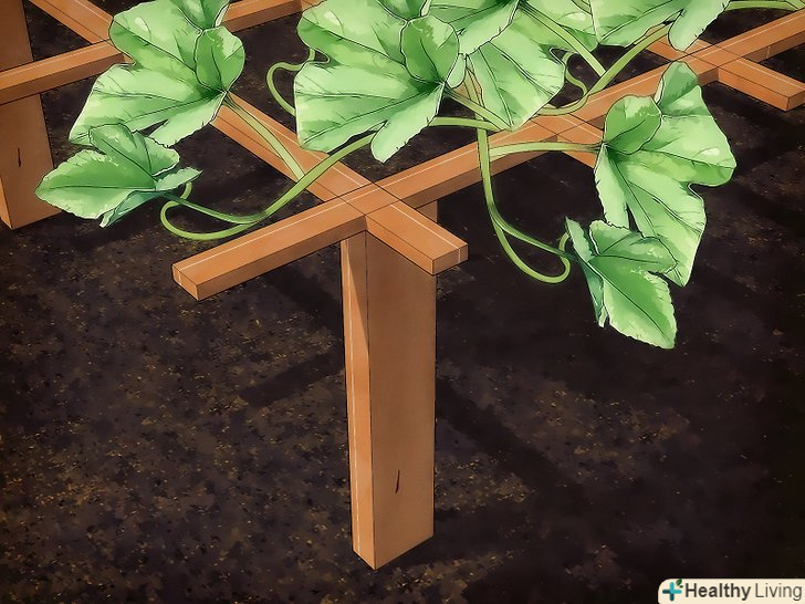 Ви можете підв'язати рослини. залежно від того, який у вас город, Ви можете підв'язувати канталупи, щоб вони не росли на землі. Найкраще буде встановити поруч з динями паркан-грати.- Вкопайте біля кожної дині по жердині, висотою в метр-півтора. З'єднайте їх один з одним за допомогою дроту, рейок, товстої мотузки, і т.д. стебла дині будуть чіплятися за них і рости вгору.